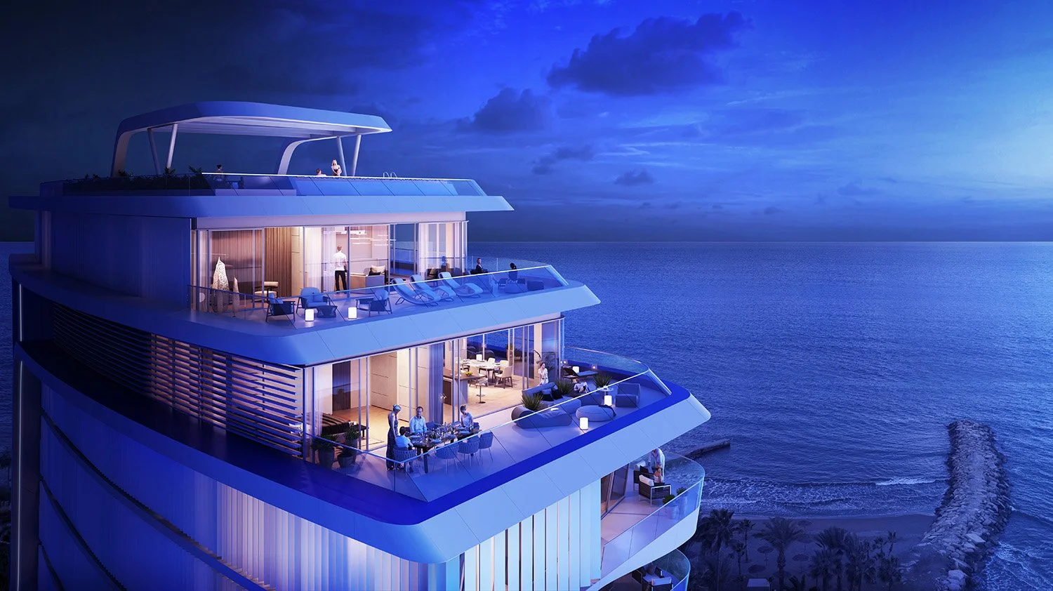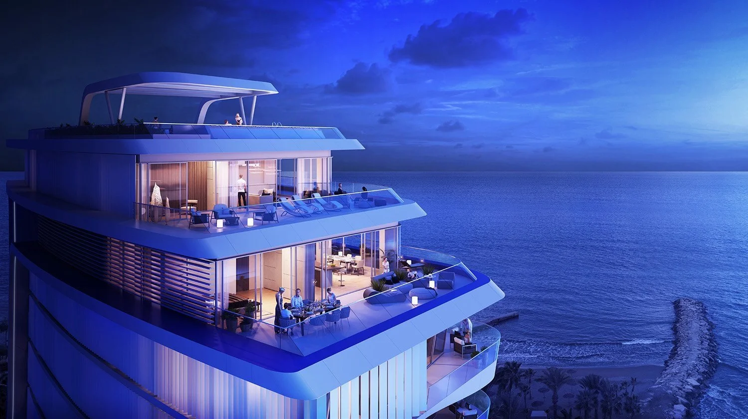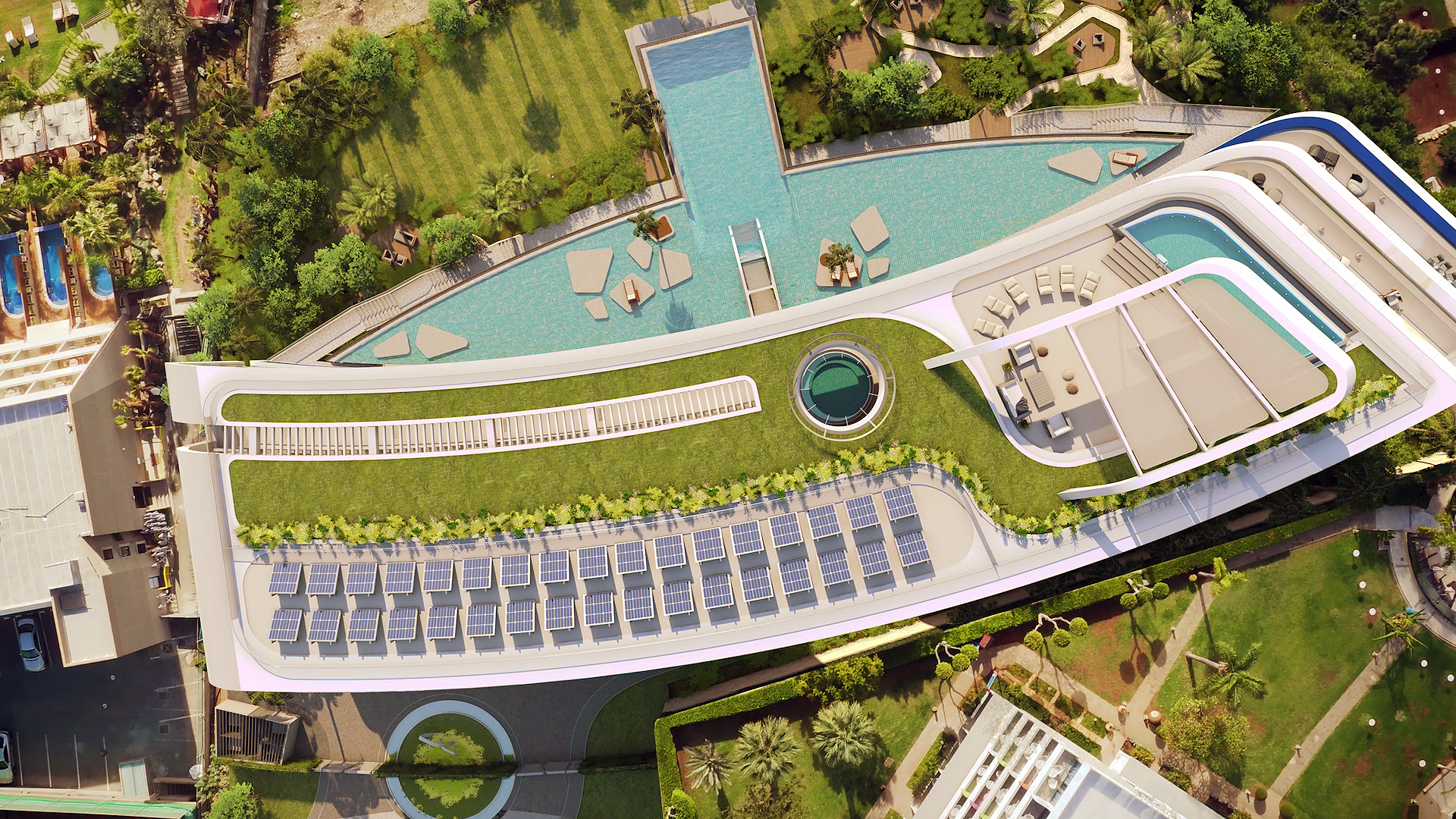Apartments include two, three, and four bedroom layouts, each with three metre-deep verandas that create a fluid transition between indoor and outdoor living. These verandas offer uninterrupted sea views and optimise shading for energy efficiency. The project’s north facade features louvres that bring in natural light while maintaining privacy from neighbouring properties. Rooftop penthouses include outdoor spaces with private pools.