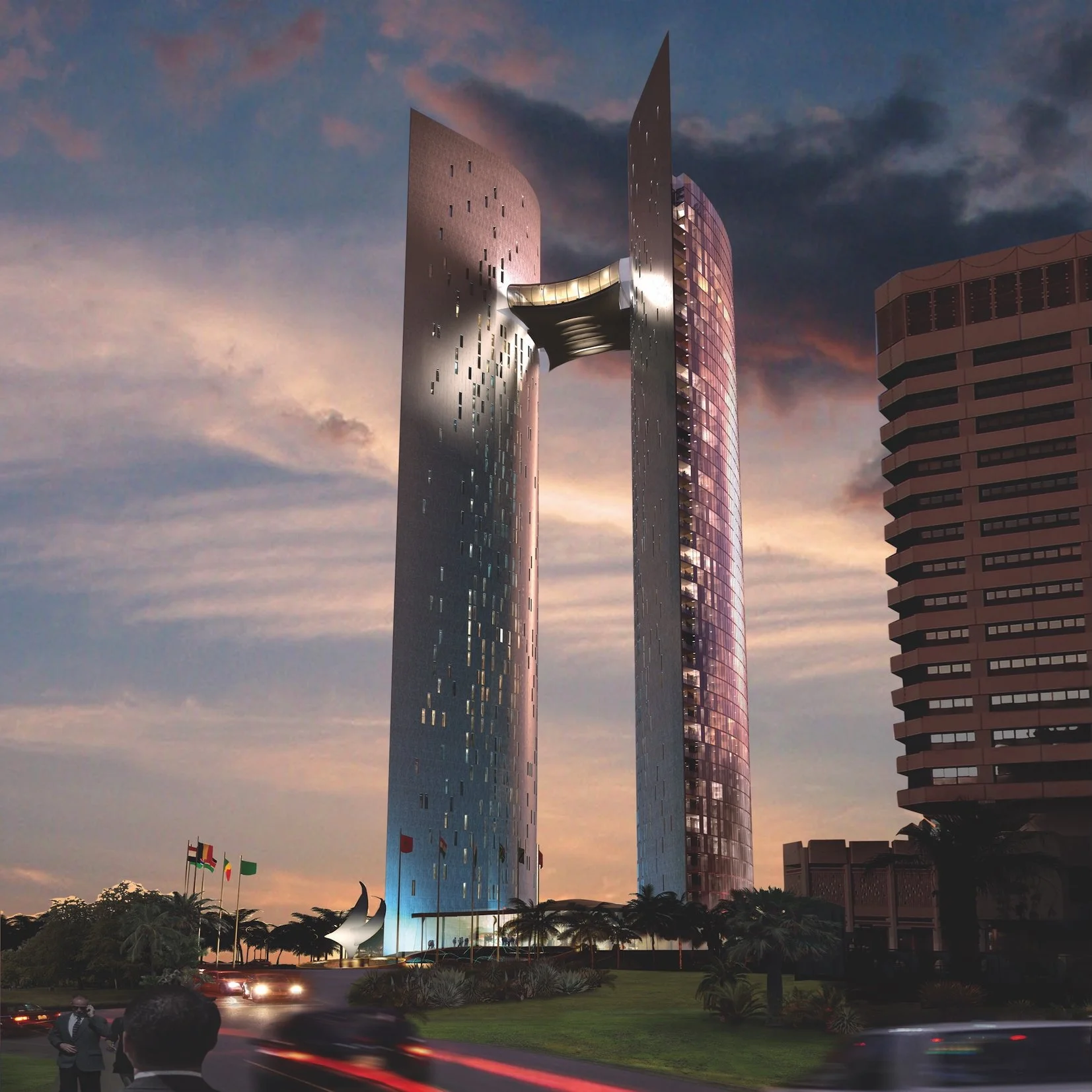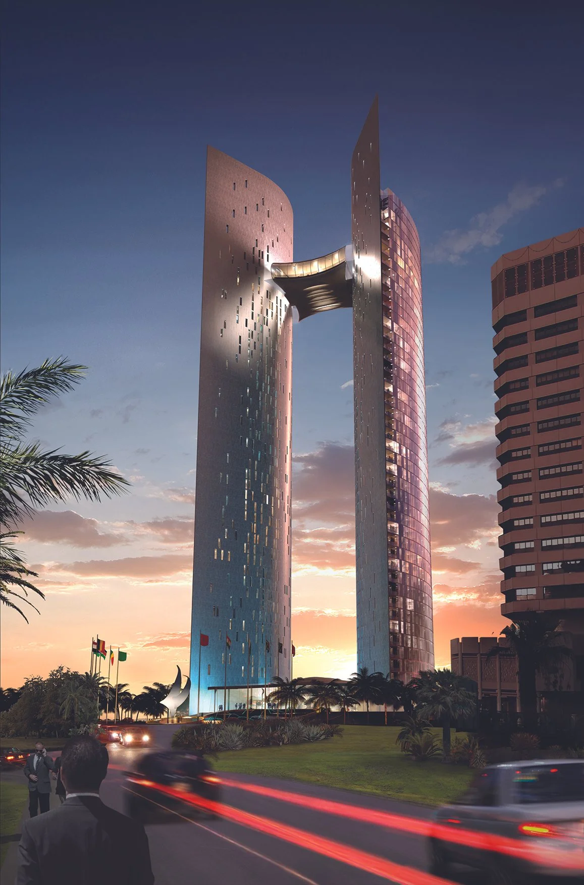 Set on a prime 34,000 sq.m. coastal site in Tripoli, Libya, Corniche Towers project introduces two striking landmark towers that will transform the city’s skyline. The towers are linked at both the ground and top levels, symbolising a harmonious integration between hospitality and luxury living. One tower is dedicated to a 5-star deluxe hotel, while the second hosts luxury serviced apartments, both managed by the hotel operator to ensure a seamless, high-end experience.