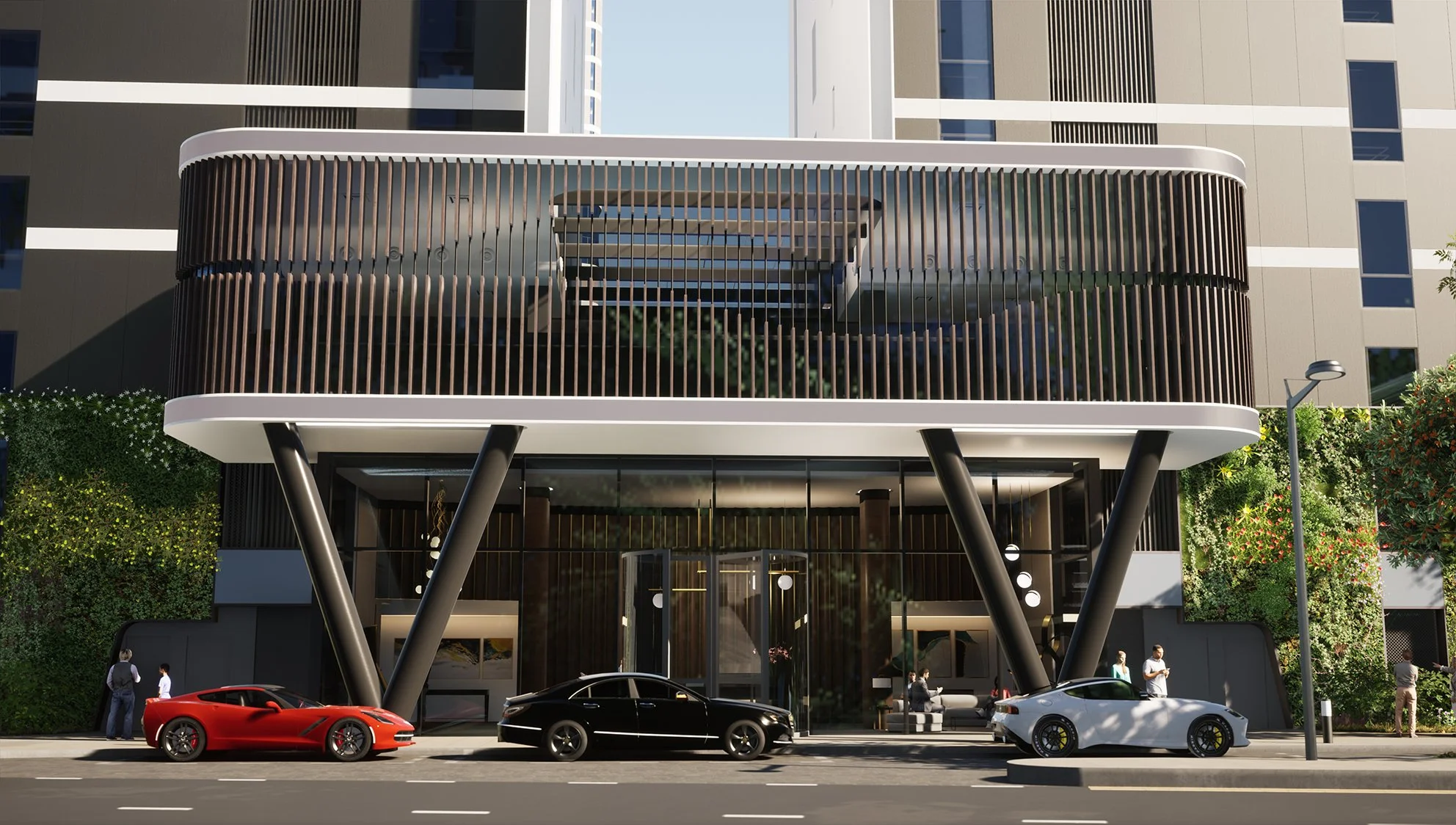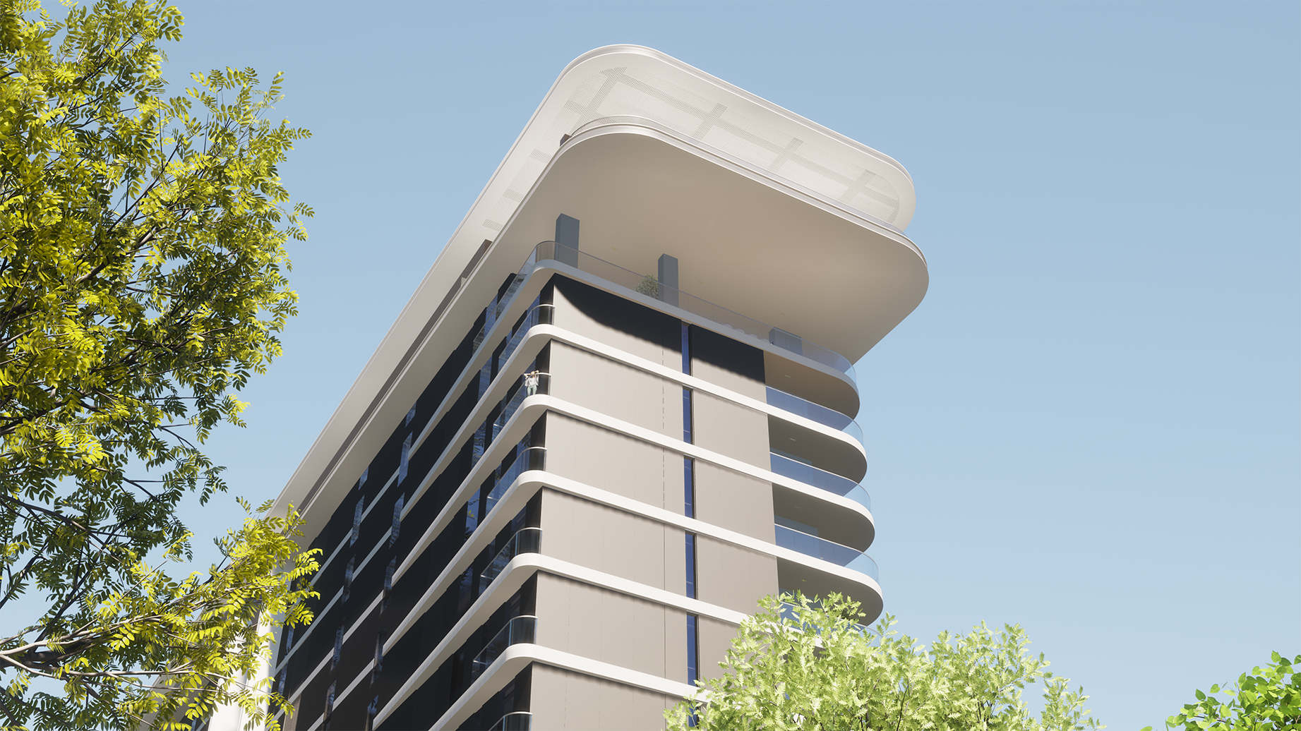 The North Residences are composed of two distinct buildings, thoughtfully linked at both the lower three floors and the rooftop, leaving a striking nine-storey gap that introduces a sense of lightness and articulation, reducing the overall massing of the buildings. This architectural connection serves as a symbol, representing unity, harmony and community within the Trilogy development. It also becomes a defining architectural feature for the North Residences, adding a fresh dimension to the entire project.